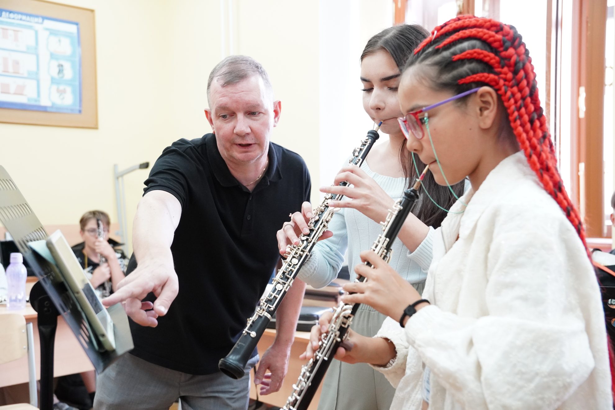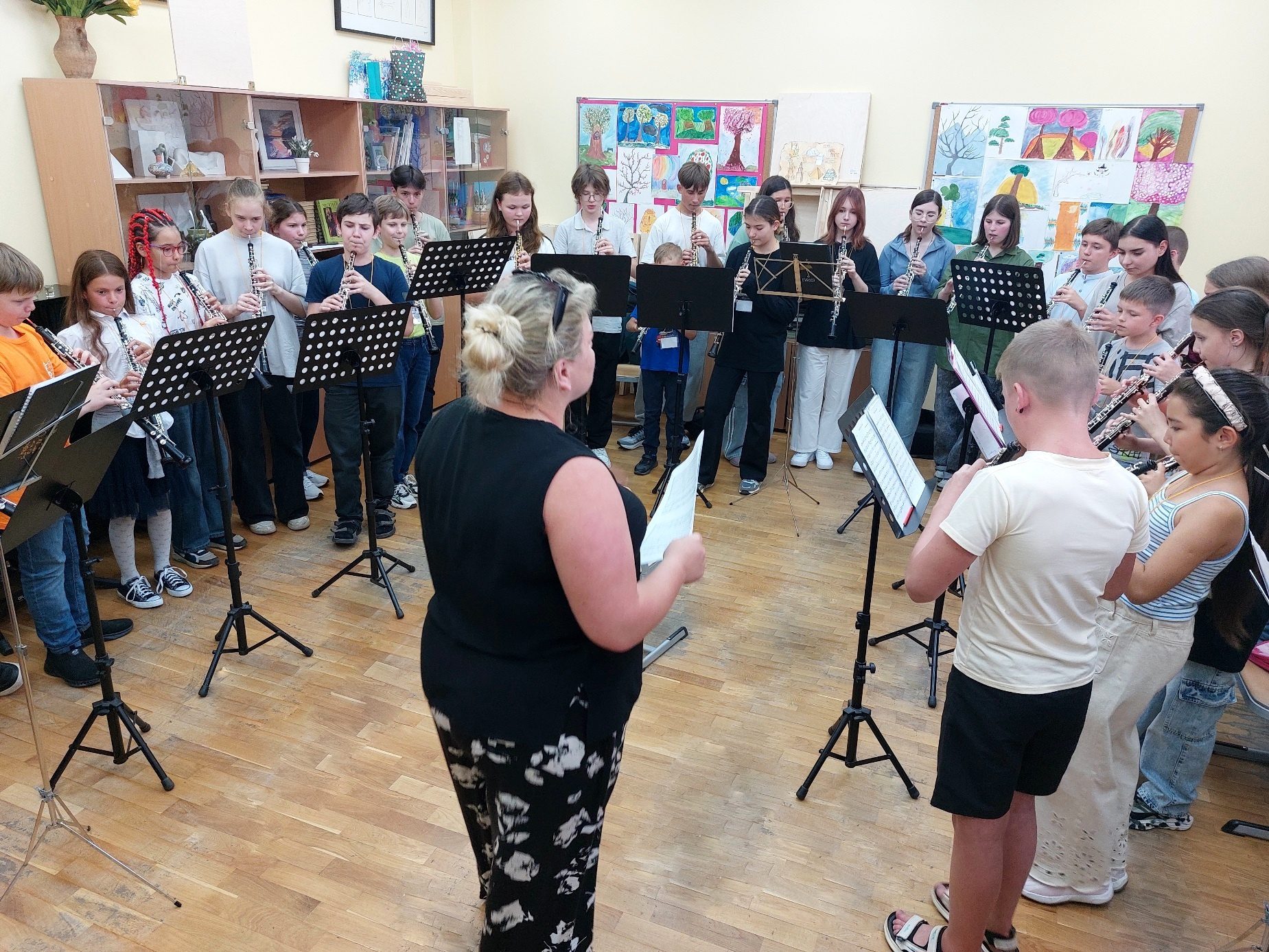 «Я преподаю ансамбль и в этот раз немного изменила концепцию работы: теперь у нас два вида ансамблей — малые составы (квартеты, квинтеты) и большой сводный хор гобоев: все 42 участника соберутся вместе, чтобы подготовить специальный номер к концерту 11 августа. Моя цель — научить детей слышать друг друга, не перебивать, работать над балансом и звуковедением. Ведь у каждого голоса своя партия, и важно, чтобы они гармонировали. В большом сводном хоре гобоев это особенно сложно, но ребята очень мотивированы!» — говорит Екатерина Владимировна Освер.