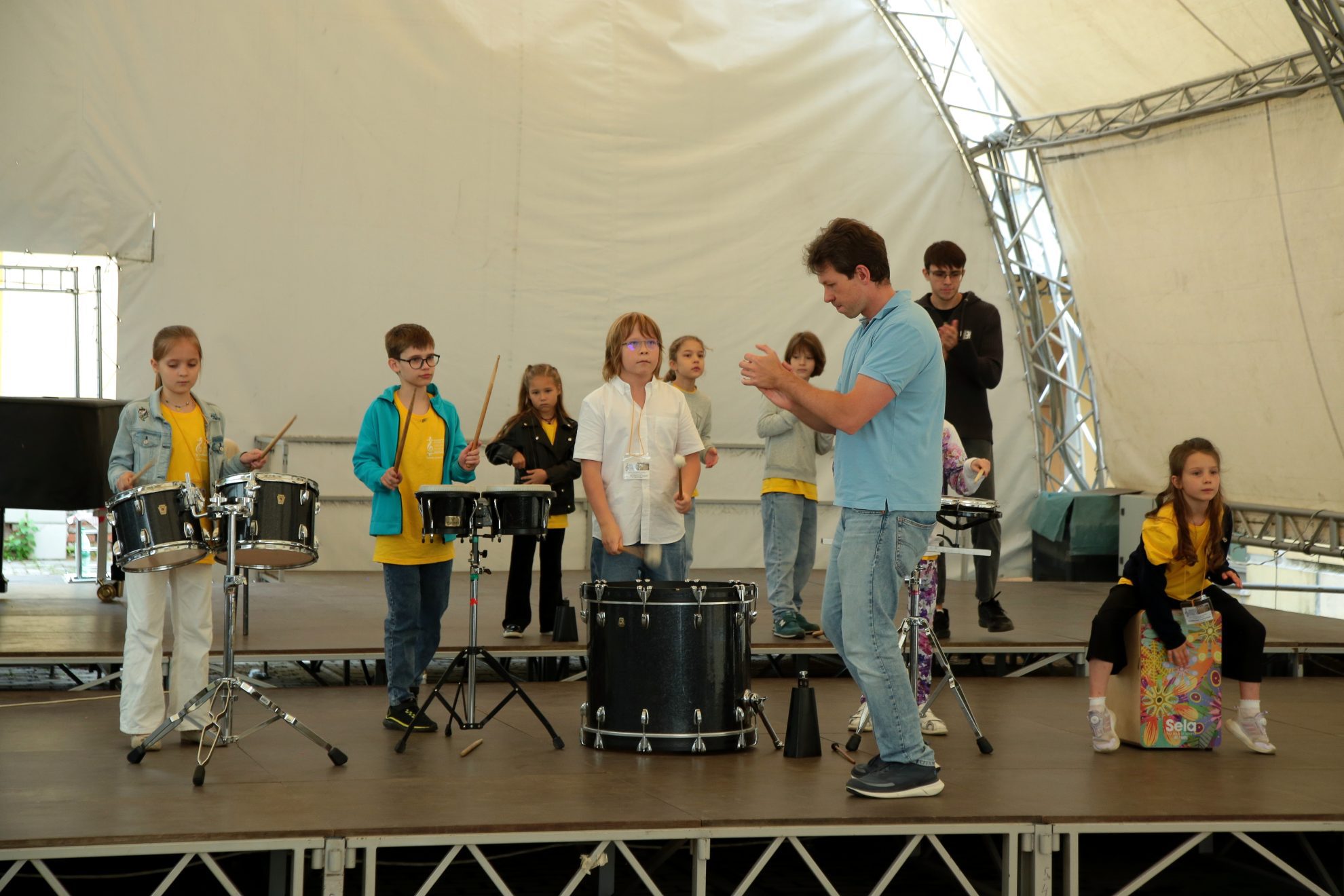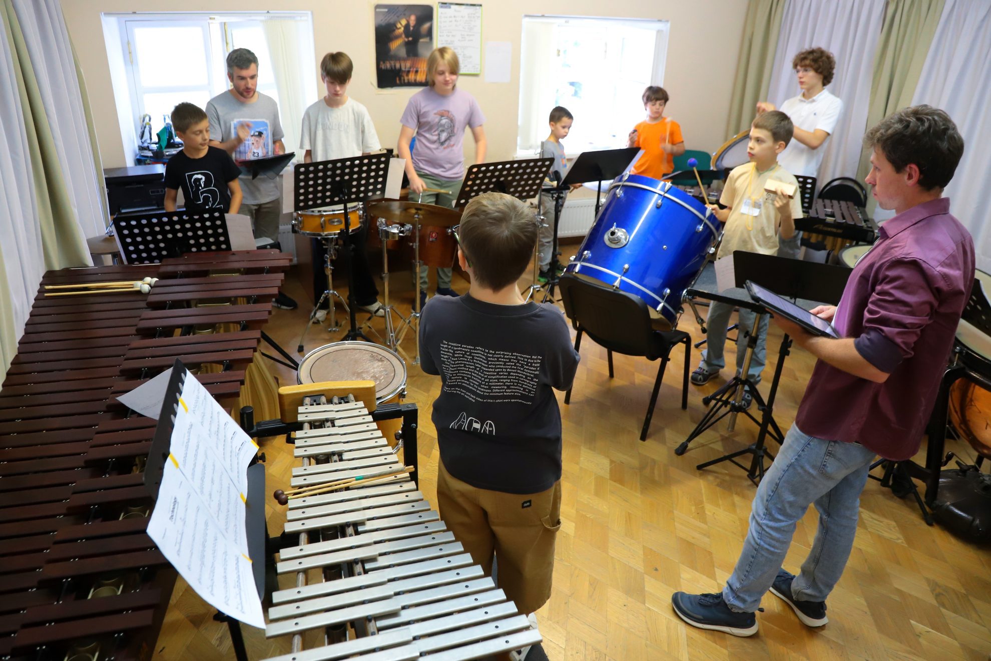 Активная подготовка к заключительным концертам продолжается: младшая группа выступит 16 августа, а средняя и старшая — в финальный день Летней школы. Под руководством педагогов Михаила Путкова и Владимира Терехова ребята разучили ритмические композиции, в которых каждый продемонстрирует приобретенные навыки: владение четкой ритмической пульсацией, умение работать в команде, артистизм. Преподаватели рассказали, как проходят их уроки: