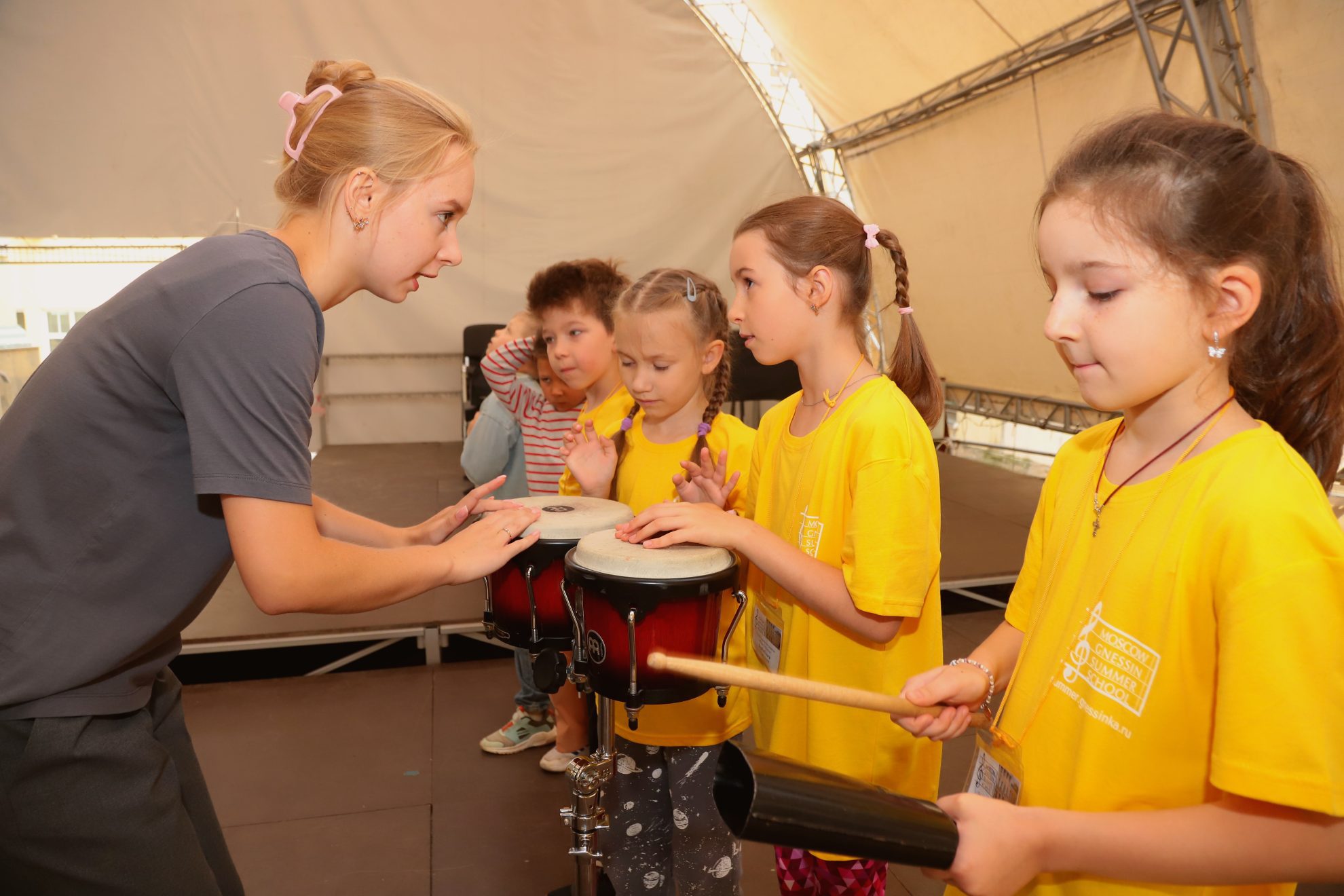 «Со старшей группой мы работаем над ритмическим ансамблем, используя технику body percussion, а со средней — воссоздаем шумовой ансамбль (наподобие орфовского). Мы выбрали латиноамериканский ритм, который проговариваем голосом, раскрывая его через звучание и движение. Также мы учим ребят проявлять себя на сцене. Здесь очень важно умение представить себя публике: почувствовать атмосферу, взаимодействовать с аудиторией, красиво завершить выступление, а при необходимости — справиться со стрессовыми ситуациями (например, если что-то забыто)».