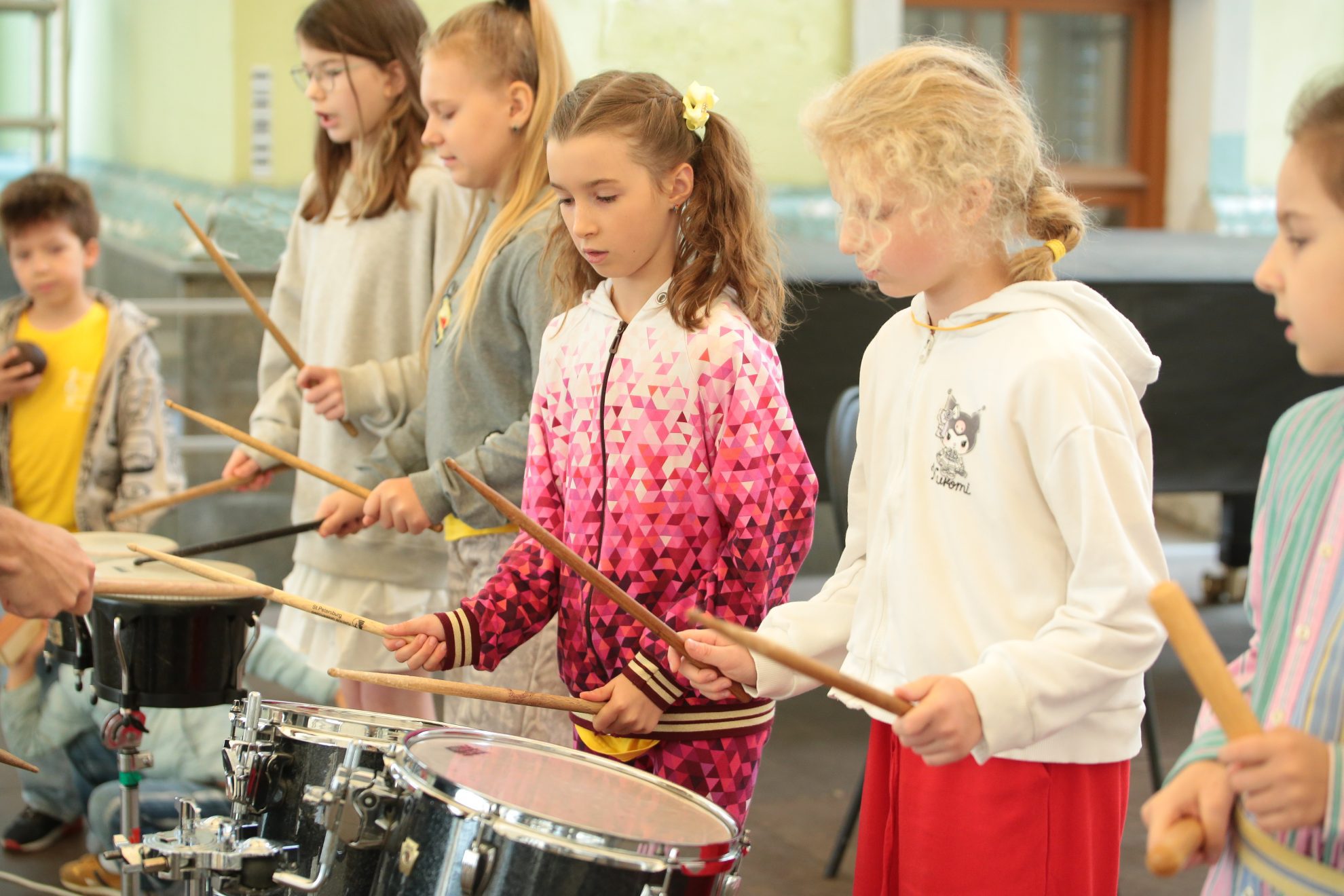 «Все ребята очень активные и заинтересованные, они с большим желанием выстукивают ритмы, учатся работать в команде. На занятиях мы действовали следующим образом: один ребенок начинает простой ритмический рисунок, а остальные либо повторяют его, либо добавляют свои более сложные варианты. Постепенно всё это выстраивается в линию, и создается красивая и причудливая ритмическая картина. В конце каждого урока дети были полны восторга и энергии. Всякий раз им было трудно расставаться с ударными инструментами, и они с нетерпением ждали новых занятий!» — рассказала Алина Можар.
