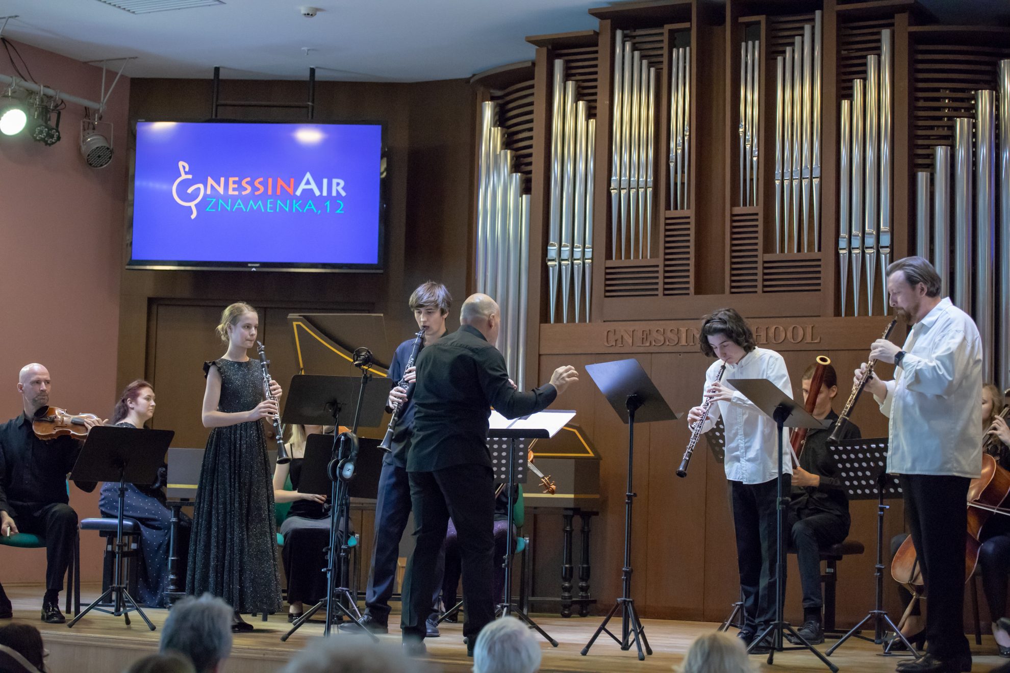 Параллельно с отчетными концертами днем, в 12.00 в Органном зале, в рамках фестиваля «GNESSIN AIR на Знаменке» выступал фестивальный оркестр старинной музыки под управлением фаготиста и дирижера Александра Посикеры, с программой «Солисты барокко». Подобные концерты в течение года с неизменными аншлагами проходят в Гнесинской школе, поскольку это уникальная возможность для музыкантов-солистов выступить с барочным коллективом, исполняя старинные произведения.